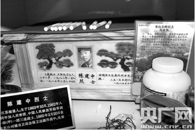進(jìn)了屋,客廳里擠滿了人,一張方桌旁坐著陳建中的父母,頭頂墻上掛著“革命烈士證明書”和陳建中穿軍裝的照片。