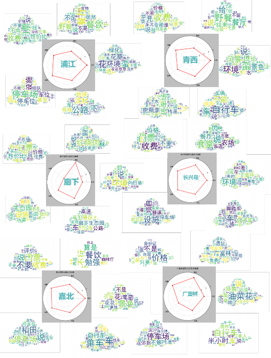 研究者將游客們針對郊野公園的評價反饋分為五類,分別是交通、消費、生態(tài)、設(shè)施和餐飲。結(jié)果顯示,在設(shè)施方面,浦江郊野公園的停車問題最為突出,有類似問題的,還有青西郊野公園。