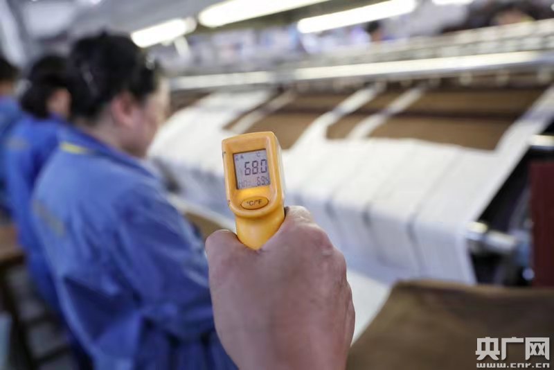 “每年夏天最難熬!币压ぷ9年的張愛(ài)華告訴記者,暑運(yùn)高峰最忙時(shí)也是車間里最熱的時(shí)候,熨燙機(jī)子周邊更熱。記者看到現(xiàn)場(chǎng)測(cè)得的溫度顯示,熨燙機(jī)周邊達(dá)到了68℃!皺C(jī)子前入口和后出口的人每半個(gè)小時(shí)要換一次,否則后面溫度太高受不了。”實(shí)際上,每半小時(shí)輪換休息的10分鐘并非“無(wú)所事事”,而是做毛毯裝袋、打包等其他工作。