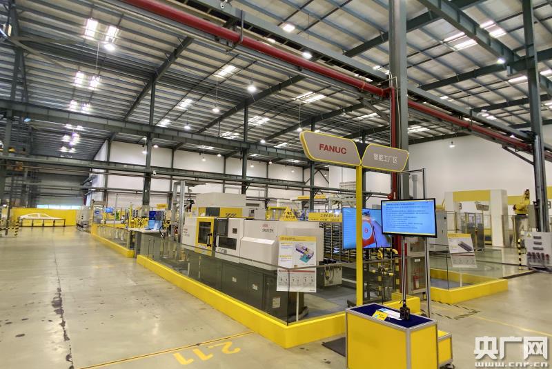 發(fā)那科機器人系統(tǒng)展示場智能工廠區(qū)(央廣網記者 唐奇云 攝)