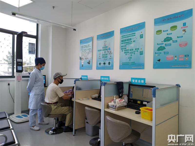 居民在工作人員幫助下進行精準(zhǔn)測壓(央廣網(wǎng)記者 林馥榆 攝)