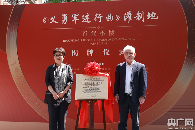 央廣網(wǎng)上海4月30日消息(記者周洪)4月30日,位于徐家匯公園綠地、被上海市文化和旅游局正式列入“上海市第一批革命文物”名錄的百代小樓——《義勇軍進(jìn)行曲》灌制地,舉行了莊重的揭牌儀式。黨史與文化研究專家和上影集團(tuán)、中唱公司、徐匯建筑可閱讀宣傳大使、部分紅色景點(diǎn)代表、建筑可閱讀志愿者聯(lián)盟代表及部分市民游客代表出席儀式,共同見證了這一上海紅色文化重要地標(biāo)的“重生”時(shí)刻。