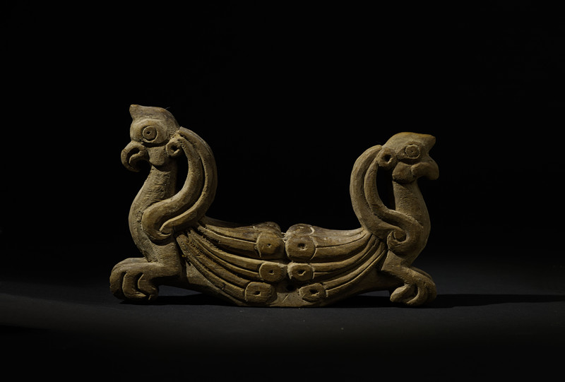 憑借強(qiáng)大的國力,貴霜王朝不僅對周邊地區(qū)產(chǎn)生一定的文化影響,而且在經(jīng)濟(jì)上產(chǎn)生了更為深入的影響。中亞地區(qū)最具特色的本土藝術(shù)就是建筑裝飾。當(dāng)貴霜人成為這一地域的統(tǒng)治者之后,他們?nèi)诤掀渌囆g(shù)形式并盡情發(fā)揮,將建筑裝飾藝術(shù)也推向了一個(gè)新的階段。在展品“木雕人獸飾板”中刻畫的有翼神獸是虛構(gòu)的神話動(dòng)物,大象也不可能出現(xiàn)于古代和田地區(qū),這兩種動(dòng)物形象的同時(shí)出現(xiàn)說明了古代和田人與外部世界的溝通交流。