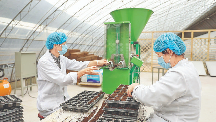 實驗室里誕生的“原原種”畢竟是有限的。如何將科技的“星火”轉(zhuǎn)化為產(chǎn)業(yè)化的“燎原之勢”?答案藏在那些整齊排列的拱棚里。
