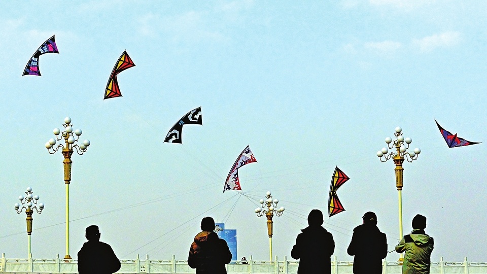 造型各異的風(fēng)箏時(shí)而俯沖、時(shí)而盤旋,伴隨著拉線的輕響。