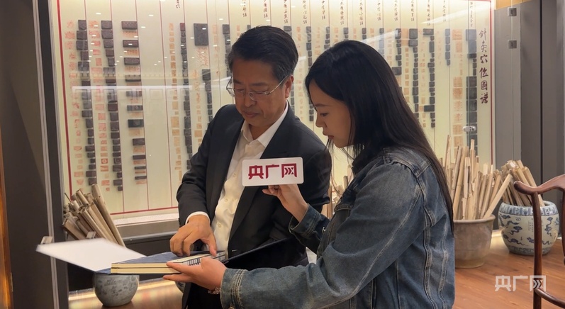 山西中醫(yī)藥大學(xué)黨委書記李華榮為記者介紹典籍(央廣網(wǎng)記者 張晉鵬 攝)
