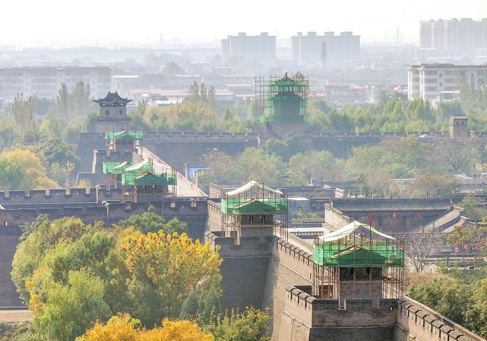 10月28日,平遙古城東城墻展開修繕作業(yè)。此次修繕是對(duì)現(xiàn)存72座敵樓進(jìn)行房面防水保護(hù)工程,采取分段實(shí)施、封閉作業(yè)的方式,最大程度減少對(duì)游客的影響。(梁生仁)