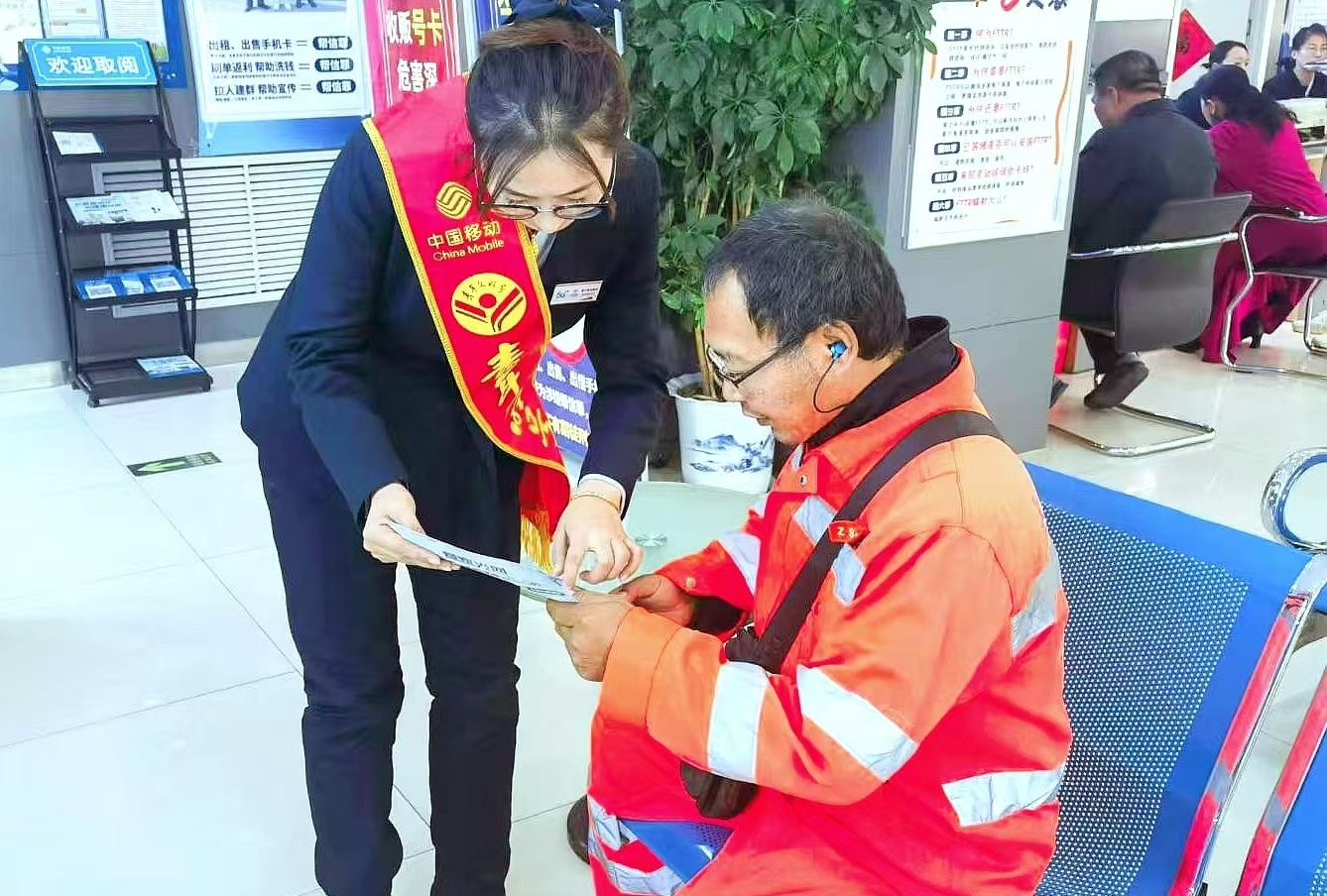 中國(guó)移動(dòng)營(yíng)業(yè)廳提供便民服務(wù)(圖片來(lái)源:山西移動(dòng)公司)