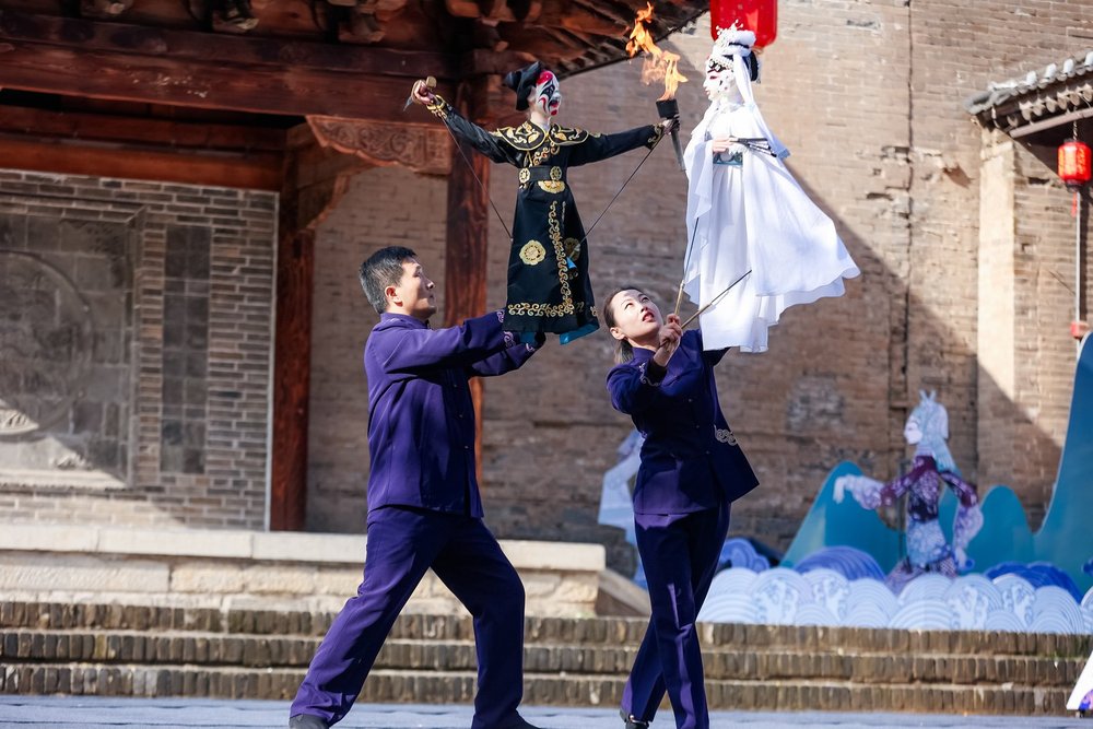 動態(tài)展演+互動體驗“見人見物見生活”。關(guān)帝廟前,《大義》情景劇再現(xiàn)晉商精神;校場上,太谷形意拳傳承人神采奕奕;扎染院里,白族扎染、苗族彩色蠟染、湘繡、蜀繡、粵繡和藏族唐卡“百花齊放”;璃韻閣中,江西景德鎮(zhèn)窯、福建德化窯、寶豐汝窯、洛陽唐三彩和高平琺華器“群瓷閃耀”;陳醋院中,聽一曲太原蓮花落的傳統(tǒng)說唱,嗅一縷濃郁的陳醋香氣,再嘗一口筋道的徐溝灌腸,好不樂哉……張璧古堡中共設(shè)置婚俗院、鄉(xiāng)味齋、皮影院、圍棋院共20余處非遺點(diǎn)位,游客可看、可嘗、可觸、可用,非遺在這一處處院落中逐漸鮮活起來。