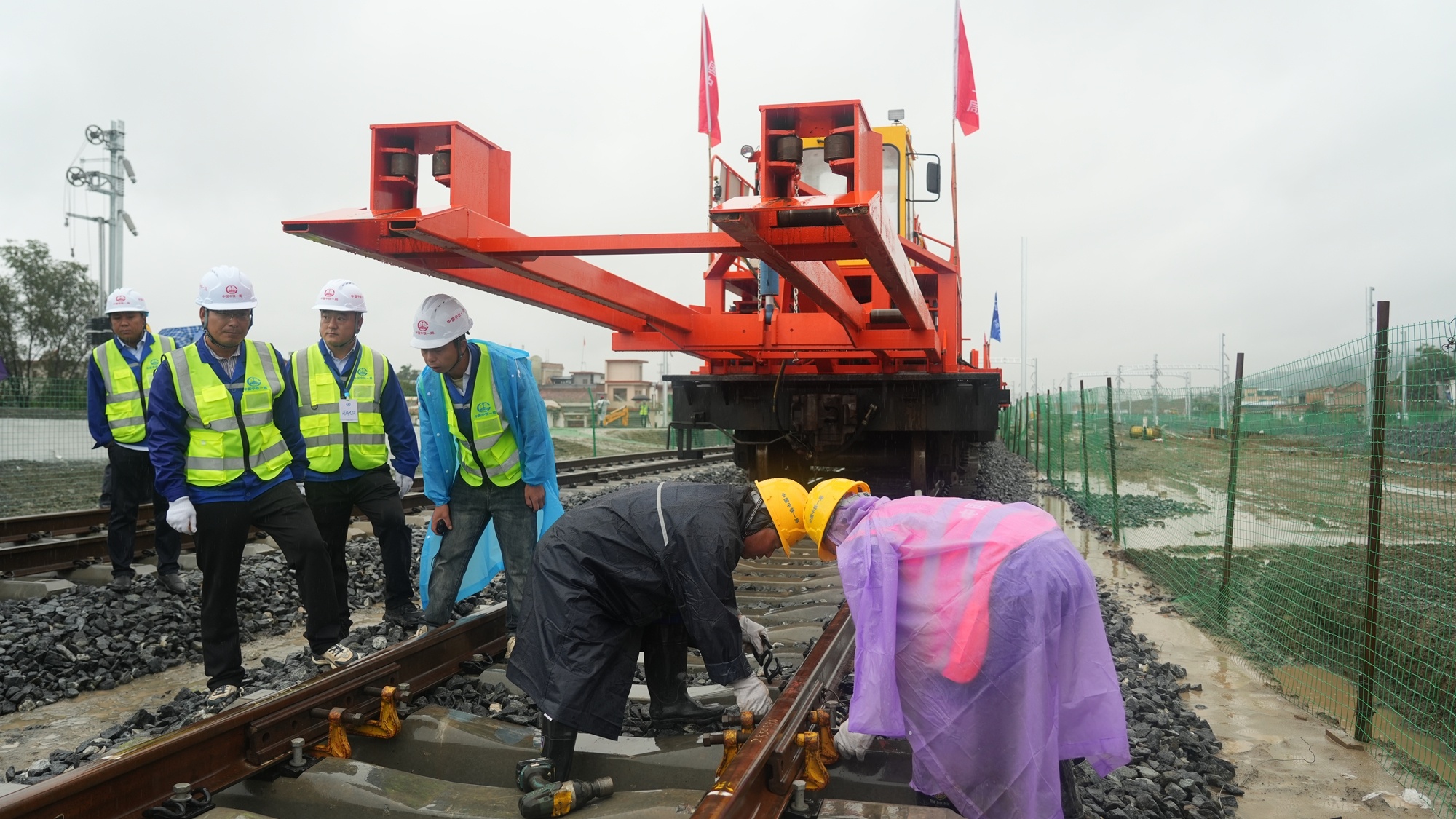 10月11日,陜西西安灞橋區(qū)的西康高鐵鋪軌基地內(nèi),我國(guó)自主研發(fā)的新型多功能長(zhǎng)鋼軌牽引車徐徐前進(jìn),將首對(duì)500米長(zhǎng)的鋼軌精準(zhǔn)平穩(wěn)地鋪設(shè)在無(wú)砟道床上。