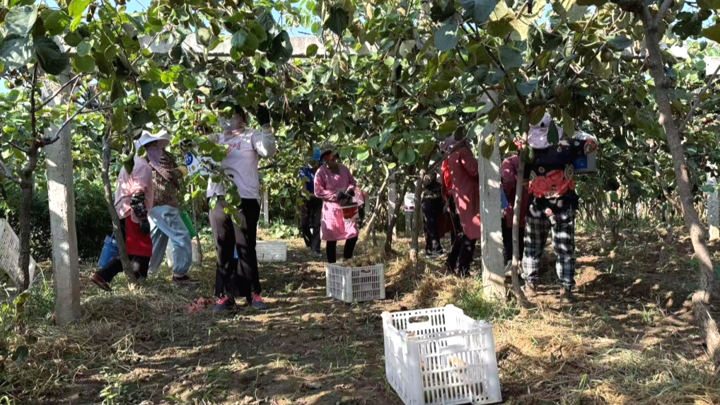 秋陽(yáng)斜照,渭水畔的果園里,獼猴桃綴滿藤架,沉甸甸地壓彎了枝梢。