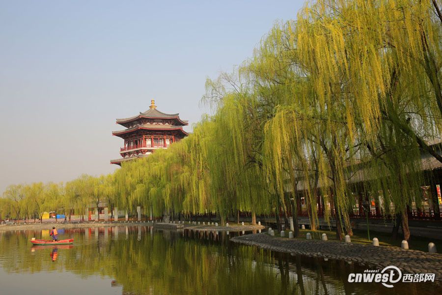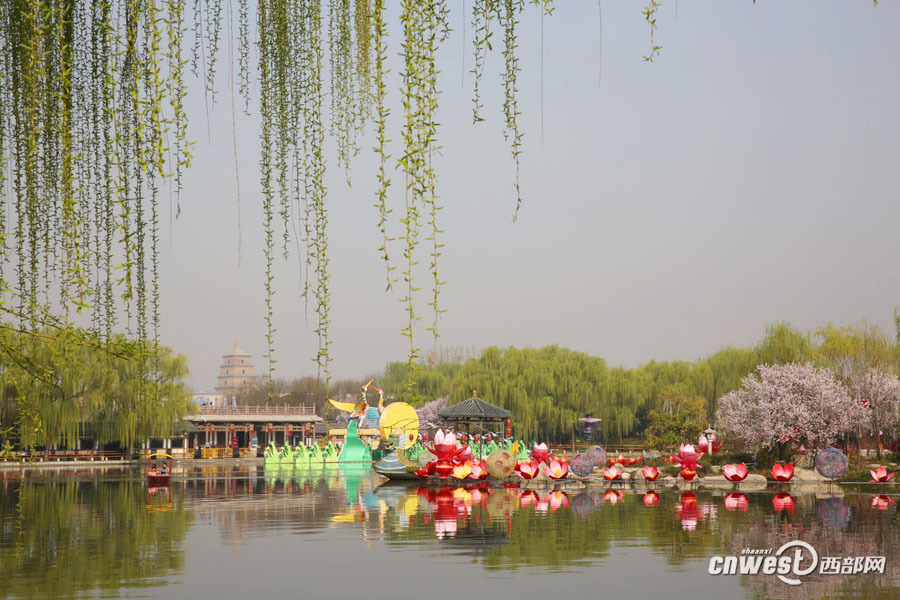 3月15日,西安大唐芙蓉園花紅柳綠,滿園春色與唐風(fēng)古韻的建筑融合在一起,嫵媚醉人。 西部網(wǎng)訊(記者 魏永賢)陜西連續(xù)近一周的艷陽天,讓氣溫迅速回暖,柳條抽新芽,多地櫻花、桃花相繼開放。3月15日,西安大唐芙蓉園里花紅柳綠,滿園春色與唐風(fēng)古韻的建筑融合在一起,嫵媚醉人。 -