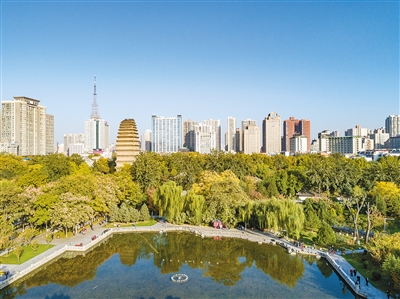 10月31日下午,西安城區(qū)天空湛藍(lán)純凈,萬(wàn)里無(wú)云。 記者竇翊明 攝