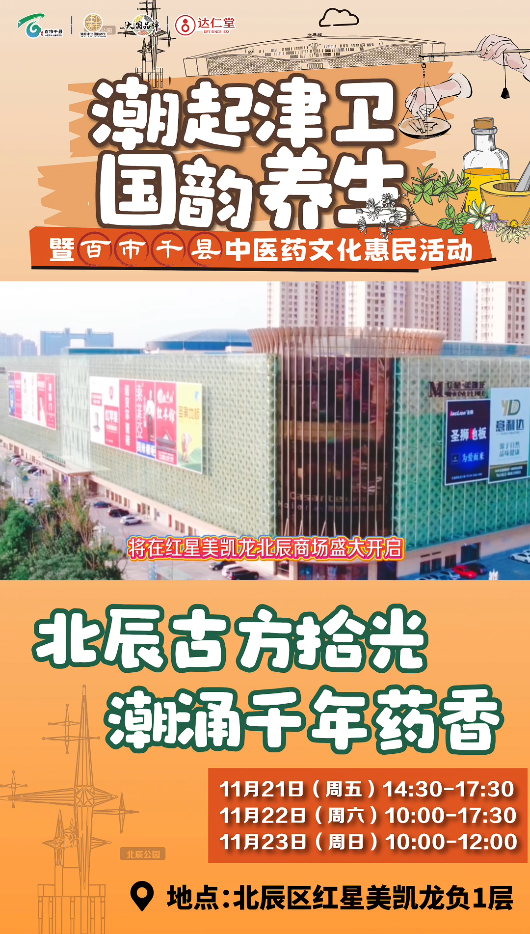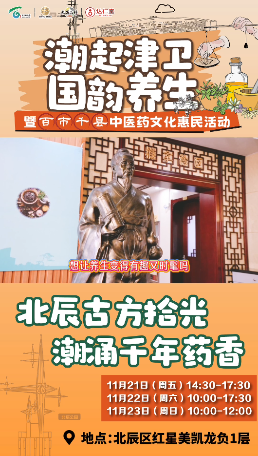 11月21日至23日,“潮起津衛(wèi)國韻養(yǎng)生”天津市中醫(yī)文化市集北辰站將隆重舉行。