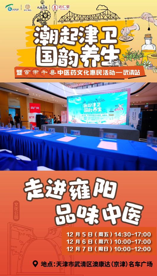 12月5日至7日,“潮起津衛(wèi) 國韻養(yǎng)生”天津市中醫(yī)文化市集武清站,將在天津市武清區(qū)澳康達(dá)(京津)名車廣場(chǎng)正式啟幕。