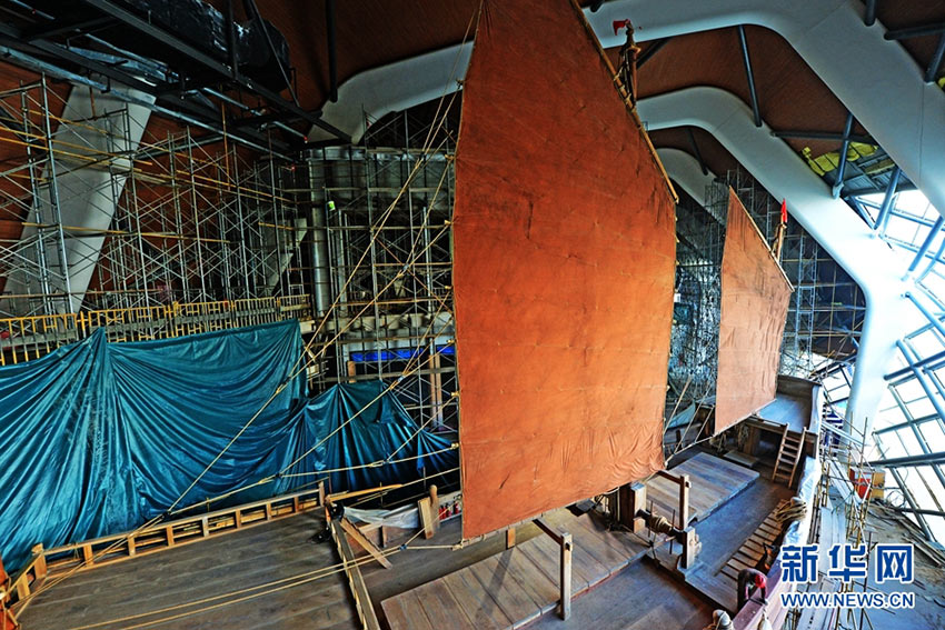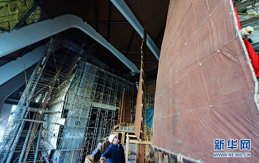 圖為在國家海洋博物館主體通過驗收的“宋元福船”。新華網(wǎng)發(fā)(史淞予 攝) 12月16日,從國家海洋博物館獲悉,我國完整復(fù)原古船的珍貴展品,堪稱海洋文化國寶級館藏的“宋元福船”復(fù)原項目主體通過驗收。 據(jù)了解,船型設(shè)計參考了中國古代船舶技術(shù)的相關(guān)文獻(xiàn)考證及研究、考古發(fā)掘出土的典型古船及配置資料以及現(xiàn)代傳統(tǒng)木質(zhì)帆船制造工藝。 -