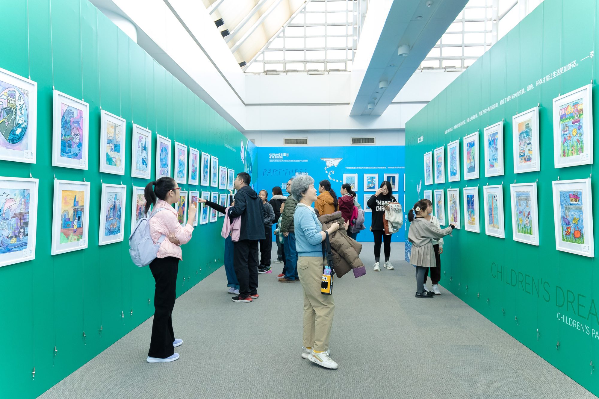 據(jù)了解,本次畫展共征集到200余幅14歲以下少兒原創(chuàng)作品,經(jīng)籌備組精心篩選,151幅優(yōu)秀畫作最終入圍展出,年齡最小的作者僅4歲。展覽以“河湖長制”為核心,分為“幸福河湖”“孩子的夢”“最愛畫的”三大板塊:81幅“幸福河湖”作品直觀展現(xiàn)經(jīng)開區(qū)河湖治理與生態(tài)保護(hù)成果;40幅“孩子的夢”畫作以奇幻想象勾勒經(jīng)開美好生活;30幅“最愛畫的”作品聚焦周大福金融中心、茱莉亞音樂學(xué)院等經(jīng)開區(qū)地標(biāo),盡顯區(qū)域奮進(jìn)宜居風(fēng)貌。