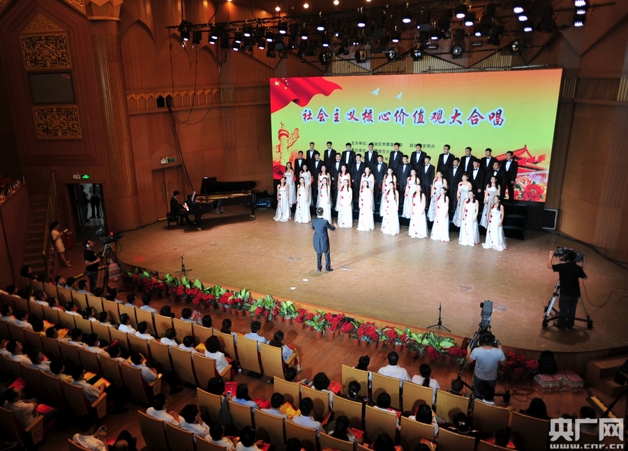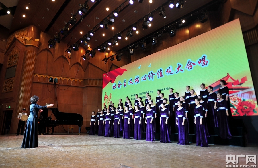 央廣網(wǎng)烏魯木齊6月13日消息(記者 羅成)6月12日晚,新疆維吾爾自治區(qū)社會主義核心價值觀大合唱在新疆師范大學(xué)音樂廳隆重舉行。