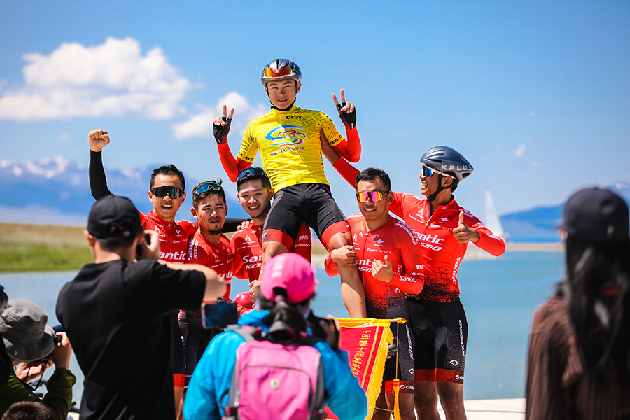 第五賽段比賽結(jié)束后,中國(guó)新疆第十三屆環(huán)賽里木湖公路自行車賽閉幕式暨頒獎(jiǎng)典禮在賽里木湖月亮灣舉行。森地客科速美車隊(duì)選手周克強(qiáng)以10小時(shí)50分鐘19秒的成績(jī)奪得個(gè)人總成績(jī)冠軍。森地客科速美車隊(duì)選手徐暄評(píng)和邁金朝盟體育車隊(duì)選手朱梵心分別獲得第二名、第三名。森地客科速美車隊(duì)以32小時(shí)35分30秒的成績(jī)將團(tuán)體冠軍收入囊中,邁金朝盟體育車隊(duì)、美利達(dá)偌飛客車隊(duì)分獲第二、三名。