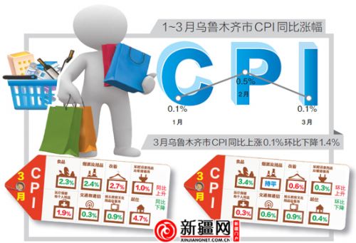 繼今年1月份烏魯木齊市CPI同比上漲0.1%,創(chuàng)下五年來新低后,3月份CPI漲幅重現(xiàn)五年來最低點(diǎn)。