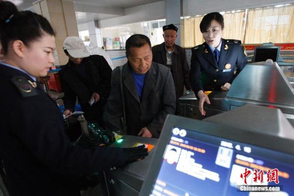 自2014年新疆各大客運(yùn)站實(shí)行實(shí)名制購(gòu)票進(jìn)站之外,今年新疆烏魯木齊南郊客運(yùn)站率先在全疆范圍內(nèi)啟用人臉識(shí)別技術(shù),進(jìn)入客運(yùn)站乘客須出示身份證、車票的同時(shí),還需進(jìn)行人臉識(shí)別,三項(xiàng)符合才能進(jìn)入候車大廳。中新社發(fā)王小軍 攝