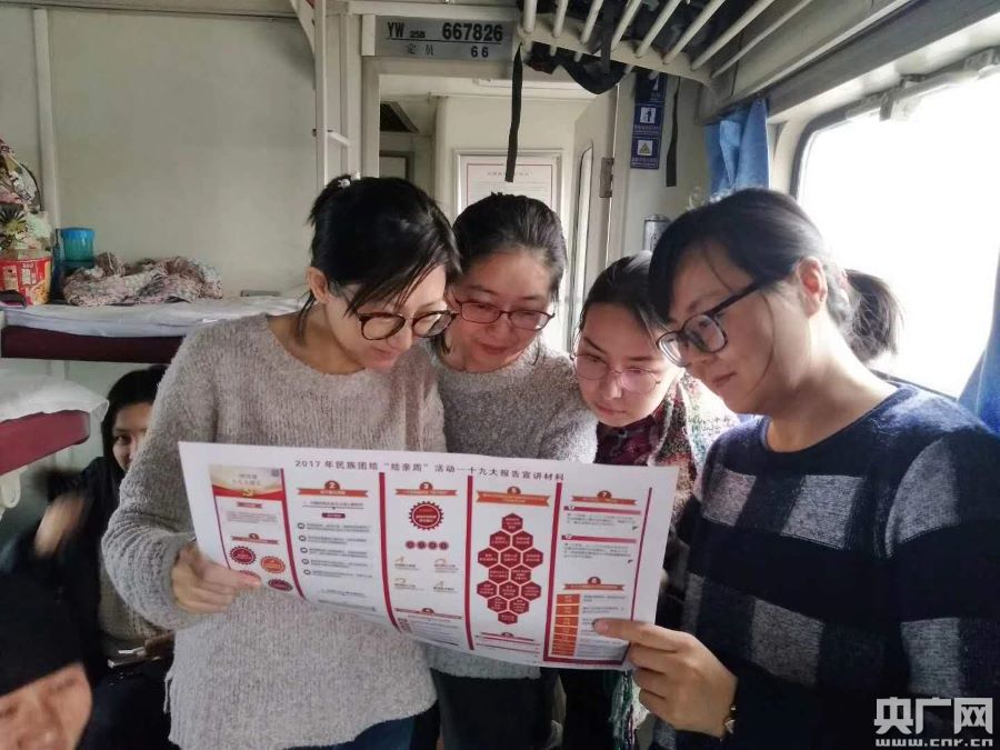 “民族團(tuán)結(jié)一家親”列車上學(xué)習(xí)十九大報告