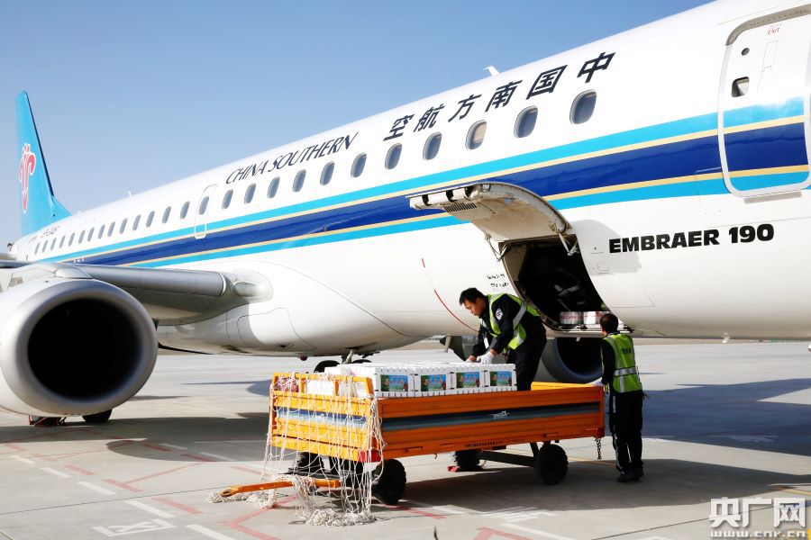 記者陳卓然:好的主持人。新疆現(xiàn)有運輸機場21個,占全國總量的8.9%,是擁有機場數(shù)量最多的省區(qū)之一,其中喀什、庫爾勒、伊寧、阿克蘇、和田機場為百萬級中型機場。近年來,新疆民航持續(xù)加快“疆內(nèi)成網(wǎng)、東西成扇”的航線布局建設(shè),快捷高效的空中交通網(wǎng)正加速形成?罩械慕煌ňW(wǎng)有多密集,我給大家介紹一組數(shù)據(jù),目前,新疆支線機場開通不經(jīng)停烏魯木齊直飛疆外航線55條,支線機場間互飛航線50條。阿克蘇、喀什、和田、庫爾勒等11個支線機場都可以直飛疆外20個城市。截至目前,共有34家航空公司運營涉疆定期航線航班,疆內(nèi)客運航線已實現(xiàn)環(huán)飛、串飛,疆外定期航線日益增多。250多條國內(nèi)國際航線讓新疆與世界的距離越來越近。據(jù)了解,上半年,全疆支線機場旅客吞吐量達(dá)630.7萬人次。隨著旅游旺季的到來,新疆各個機場旅客吞吐量持續(xù)增長。不斷織密的航線,也為新疆特產(chǎn)出疆打開了新通道。近年來,新疆特產(chǎn)航空運輸出港量連創(chuàng)新高,新疆的酸奶、牛羊肉、干鮮果打飛的出疆也不是稀罕事兒,隨著瓜果季的到來,水果類貨物增量明顯。從5月底截止到目前,南航貨運承運水果高達(dá)1500噸,其中杏子、哈密瓜、蟠桃等最受歡迎,主要銷往北京、上海、廣州、杭州、成都等城市,僅南航在烏魯木齊的日均運輸量達(dá)130噸,北京、廣州、上海等多條航線出現(xiàn)艙位爆滿的情況。