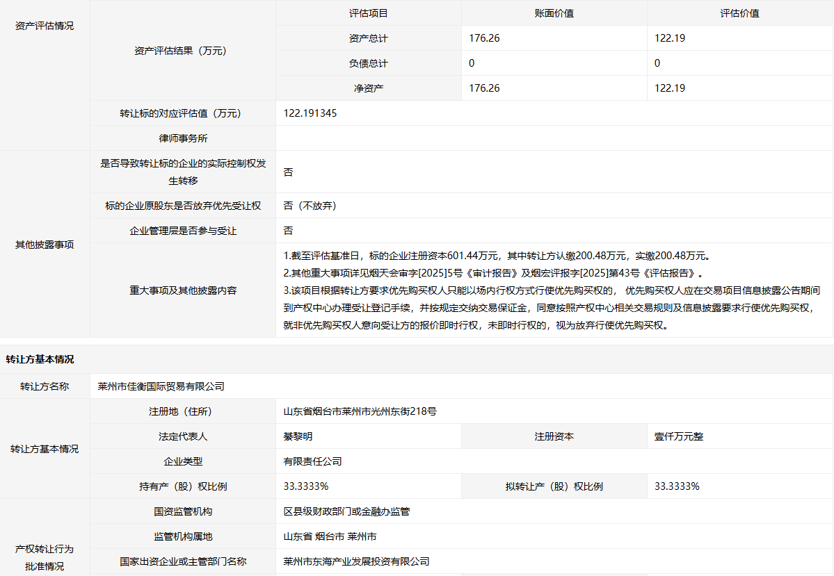 萊州市海之運石油化工有限公司33.3333%國有股權