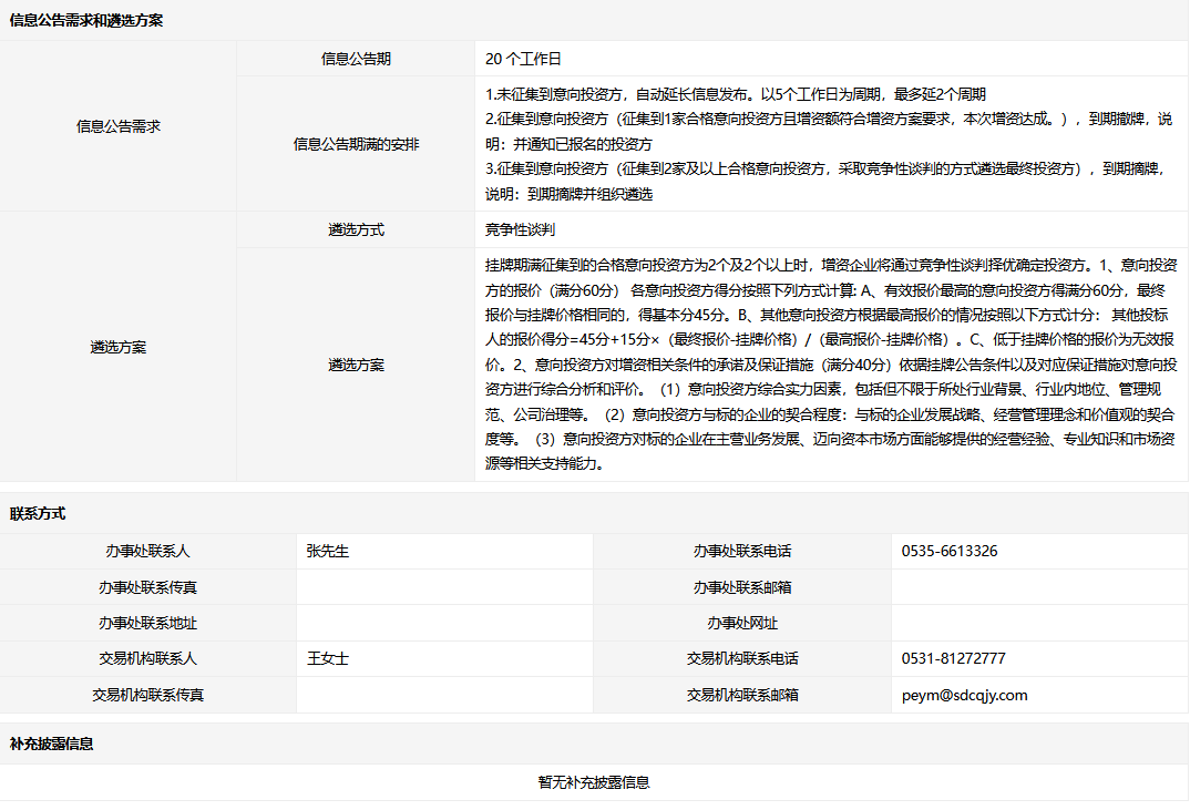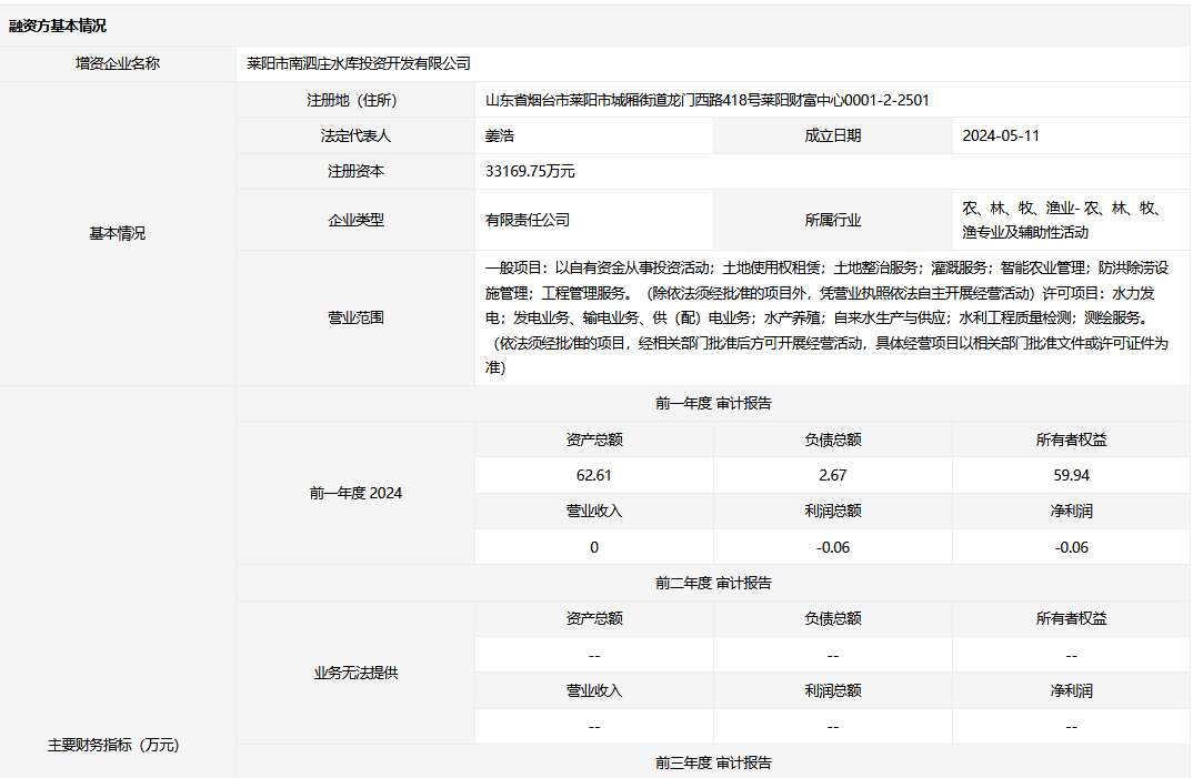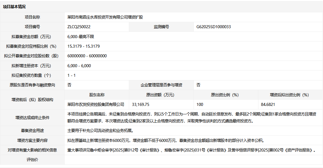 萊陽市南泗莊水庫投資開發(fā)有限公司增資擴股