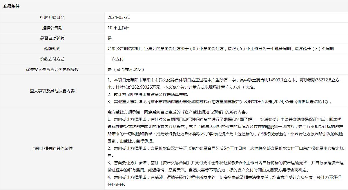 煙臺市城市建設(shè)發(fā)展集團(tuán)有限公司資源開發(fā)分公司塔山北路施工產(chǎn)出砂石出售項(xiàng)目交易公...