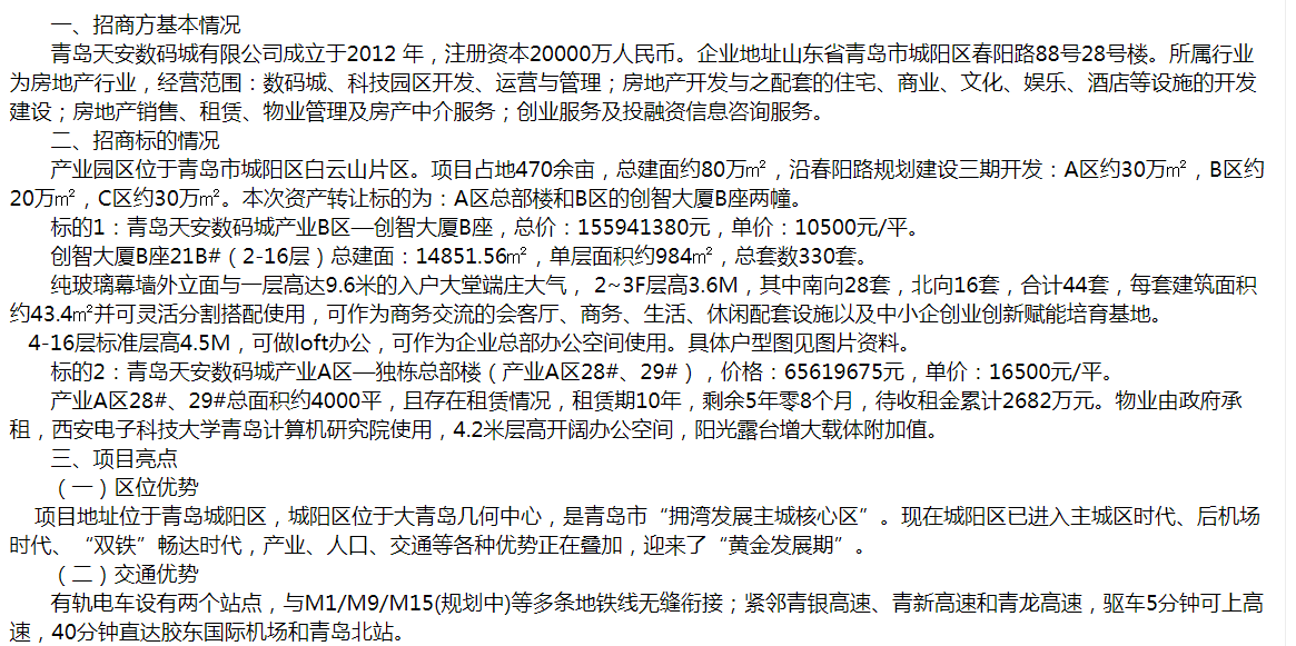 青島天安數碼城產業(yè)園商務樓宇轉讓