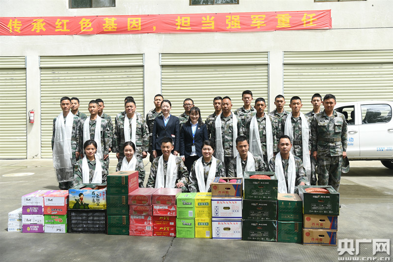 西藏移動公司代表向部隊官兵贈送慰問品(央廣網(wǎng)發(fā) 張博倫 攝)