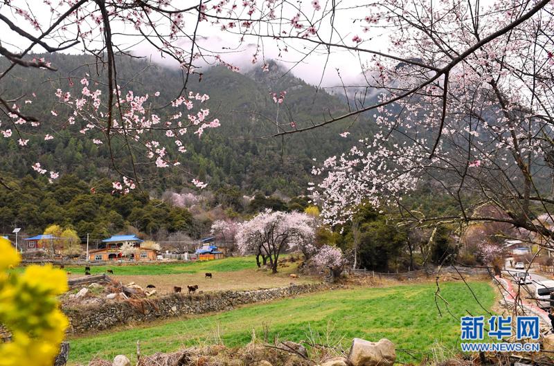 波密境內(nèi)桃花掩映的農(nóng)家(3月29日攝)。 春天的西藏林芝市波密縣,雪山腳下桃花芬芳、鶯啼燕語,引人入勝。波密縣處于川藏公路中段,境內(nèi)地勢(shì)險(xiǎn)峻,風(fēng)景秀美。 新華社記者張汝鋒攝 -