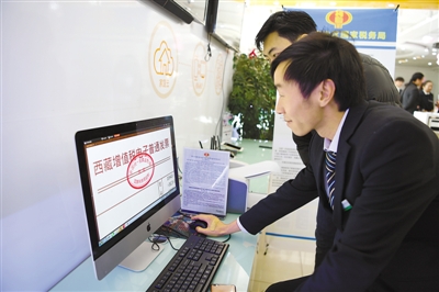 17日上午十點(diǎn),納稅人在中國(guó)電信集團(tuán)公司西藏分公司營(yíng)業(yè)大廳,開出了自治區(qū)首張?jiān)鲋刀愲娮悠胀òl(fā)票。西藏日?qǐng)?bào)記者蔣蓋 孫文娟 攝