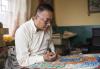 5月2日,龍桑大師在指導(dǎo)學(xué)生。新華網(wǎng)旦增尼瑪曲珠 攝 -