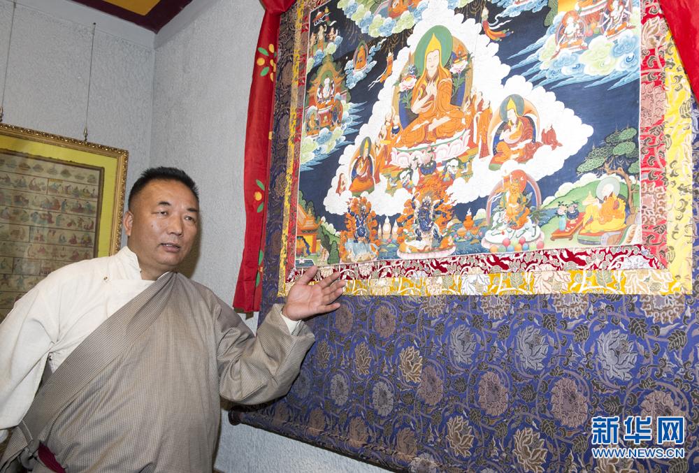 5月2日,龍桑大師的唐卡工作室一角。新華網(wǎng)旦增尼瑪曲珠 攝 1997年,藏族唐卡勉唐派國(guó)家級(jí)技藝傳承人龍桑大師在拉薩八廓街創(chuàng)立了譽(yù)桑唐卡展館。多年來(lái),他秉持傳承和發(fā)揚(yáng)優(yōu)秀傳統(tǒng)文化的信念,潛心研究博大精深的唐卡藝術(shù),并廣收弟子,將唐卡的繪畫技藝傳授給年輕一輩。如今,這個(gè)展館已初具規(guī)模,前來(lái)學(xué)藝的年輕人絡(luò)繹不絕。 龍桑大師曾參加過(guò)大昭寺、布達(dá)拉宮、甘丹寺、色拉寺、哲蚌寺等地的各類壁畫、唐卡、佛像的修復(fù)工作;曾主持色拉寺、甘丹寺等寺廟和中國(guó)拉薩雪頓節(jié)等大型節(jié)日的巨幅唐卡繪制工作。 -