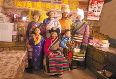 圖為次仁普赤(前排左二)一家全家福。本報(bào)記者 張琪 攝