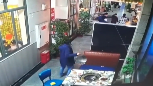 顧客用完餐將鍋?lái)樧撸ㄑ霃V網(wǎng)發(fā) 視頻截圖)