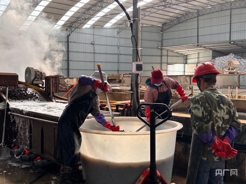 工人在加工附子(央廣網(wǎng)發(fā) 羅瑞蓮 攝)