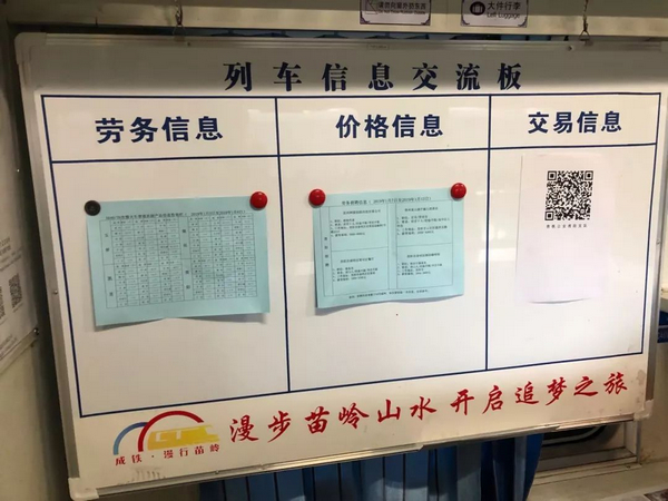 為更好地幫助少數(shù)民族村民“走出去”,胡貴川和同事們?cè)诨疖嚿洗罱ㄆ鹆诵畔冢瑸榇迕裉峁﹦?wù)工信息,并協(xié)助農(nóng)戶將農(nóng)產(chǎn)品帶上車銷售。