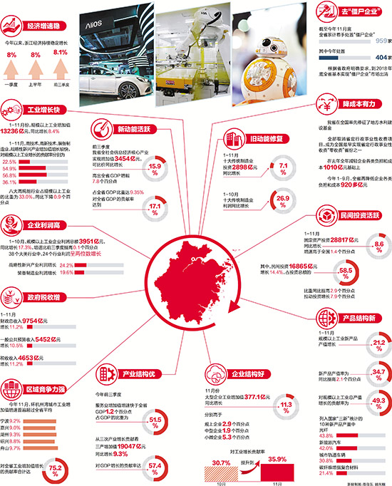 今年以來,浙江堅持穩(wěn)中求進(jìn)工作總基調(diào),以推進(jìn)供給側(cè)結(jié)構(gòu)性改革為主線,堅定不移打好轉(zhuǎn)型升級組合拳,全省經(jīng)濟(jì)延續(xù)了穩(wěn)走向好、質(zhì)量向優(yōu)的態(tài)勢,主要經(jīng)濟(jì)指標(biāo)好于預(yù)期、好于全國。