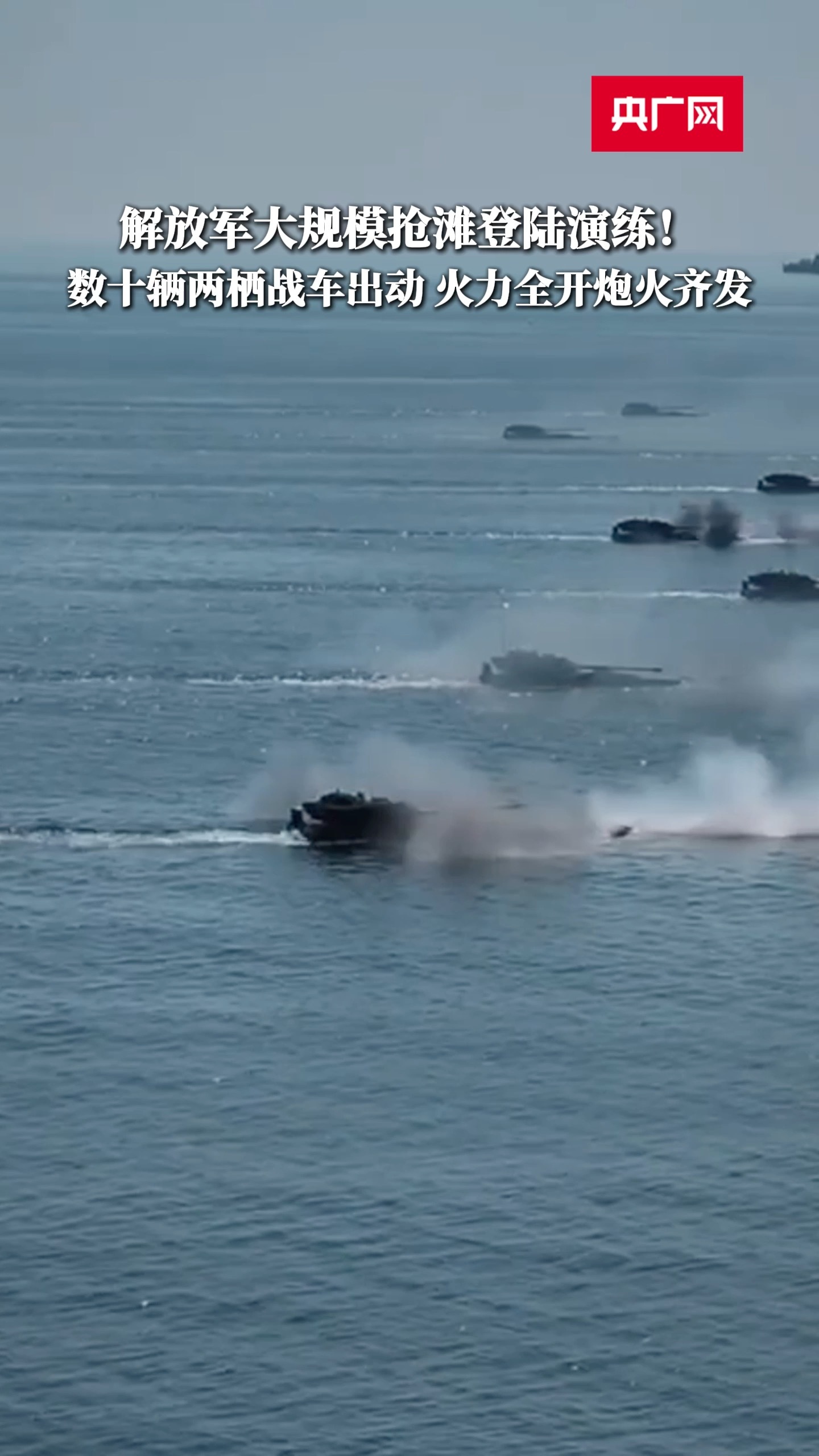 解放軍大規(guī)模搶灘登陸演練!數(shù)十輛兩棲戰(zhàn)車出動 火力全開炮火齊發(fā)